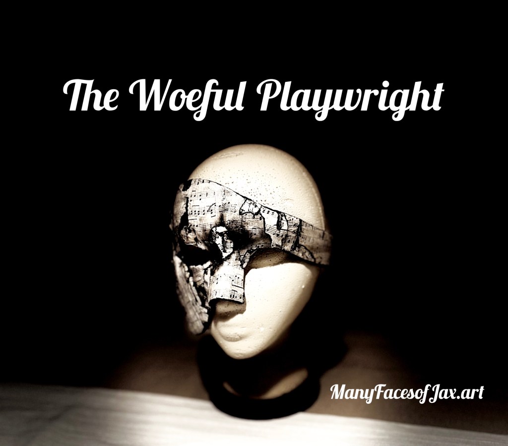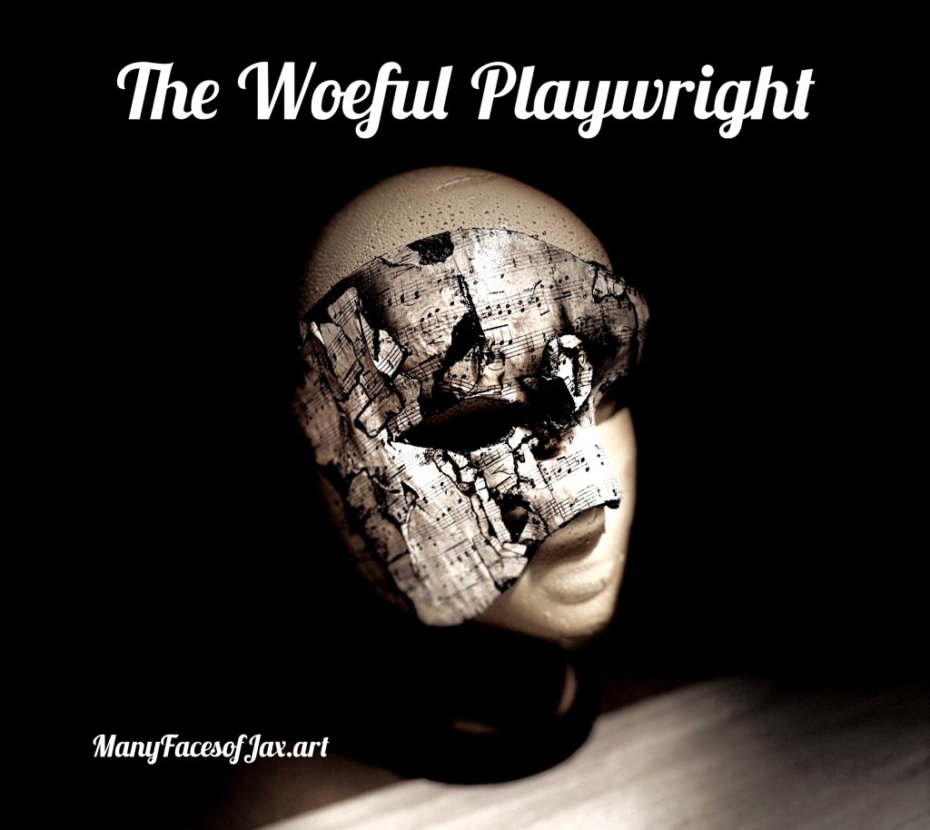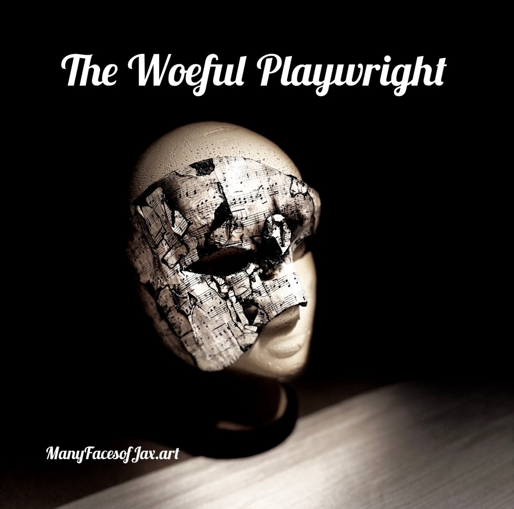 The sixth in “The Musicians” series, The Woeful Playwright is a phantom style masquerade mask covered in music sheets and burned after application.
